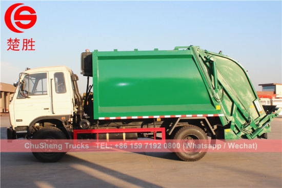 Garbage compactor truck Dongfeng (also called Garbage compressed truck, hydraulic pressing garbage truck, rear loading garbage truck, compactor garbage truck, trash compressor truck, back loading garbage compression truck, waste collection vehicle) is designed for daily rubbish transport in such living areas as all kinds of cities, large station, port and wharf, airpot, and densely-populated areas like industrial and mineral enterprises and military units.